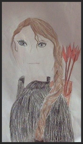 Nu ik 12 ben teken ik vooral Katniss Everdeen uit de Hungergames als portret. Maar ook teken ik vaak andere personen uit boeken, of gewoon zelf bedachte. Dieren teken ik ook graag. En ook planten. Intussen ben ik druk bezig Raven te tekenen, maar mijn camera werkt niet dus ik kan de foto's nog niet publiceren.